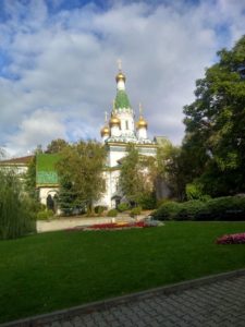 è la Chiesa russa di Sveti Nikolai, con i suoi vividi colori,immersa nel verde e in questo quadro fiabesco. Gli interni presentano icone risalenti al periodo tra l’ XI e il XIV, lo spazio è molto ridotto e la finezza dei russi all’interno mi ha fatto credere per qualche secondo di fare la fine dei morti durante il funerale di Stalin. E’ stata realizzata dalla comunità russa di Sofia a inizi ‘900 ed è dedicata a San Nicola, il santo con cui i russi hanno un legame antichissimo. “Dalle fiabe e della “bylina”, l’antica epica degli slavi, San Nicola è raffigurato come un vecchio che gira tra città e campagne, aiutando i deboli e i diseredati”, come aveva spiegato Padre Gerardo Cioffari, uno dei più grandi studiosi nicolaiani. Non è questa la circostanza per parlare del legame tra i russi e il santo italiano, ma è arrivato il momento di parlare del legame con l’Italia e la sua storia attraverso la città.
